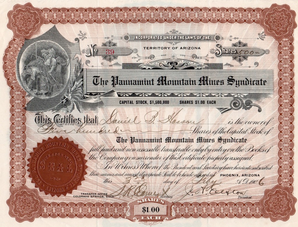 In the 1870’s to the 1890’s, the spelling of the mountain range and mining camp west of Death Valley as “Pannamint” was not uncommon. By the first decade of the twentieth century, however, it should have given pause to use the name in a mining company.