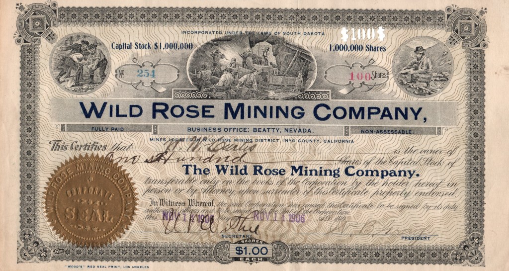 By 1913, it was all over for the Wild Rose Mining Company, with California revoking its business license for failure to pay taxes and fees due to the state.